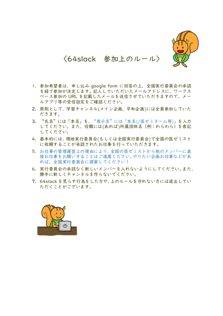 医ゼミの連絡手段である64slackについて、全国の団体からも参加者を募集します!