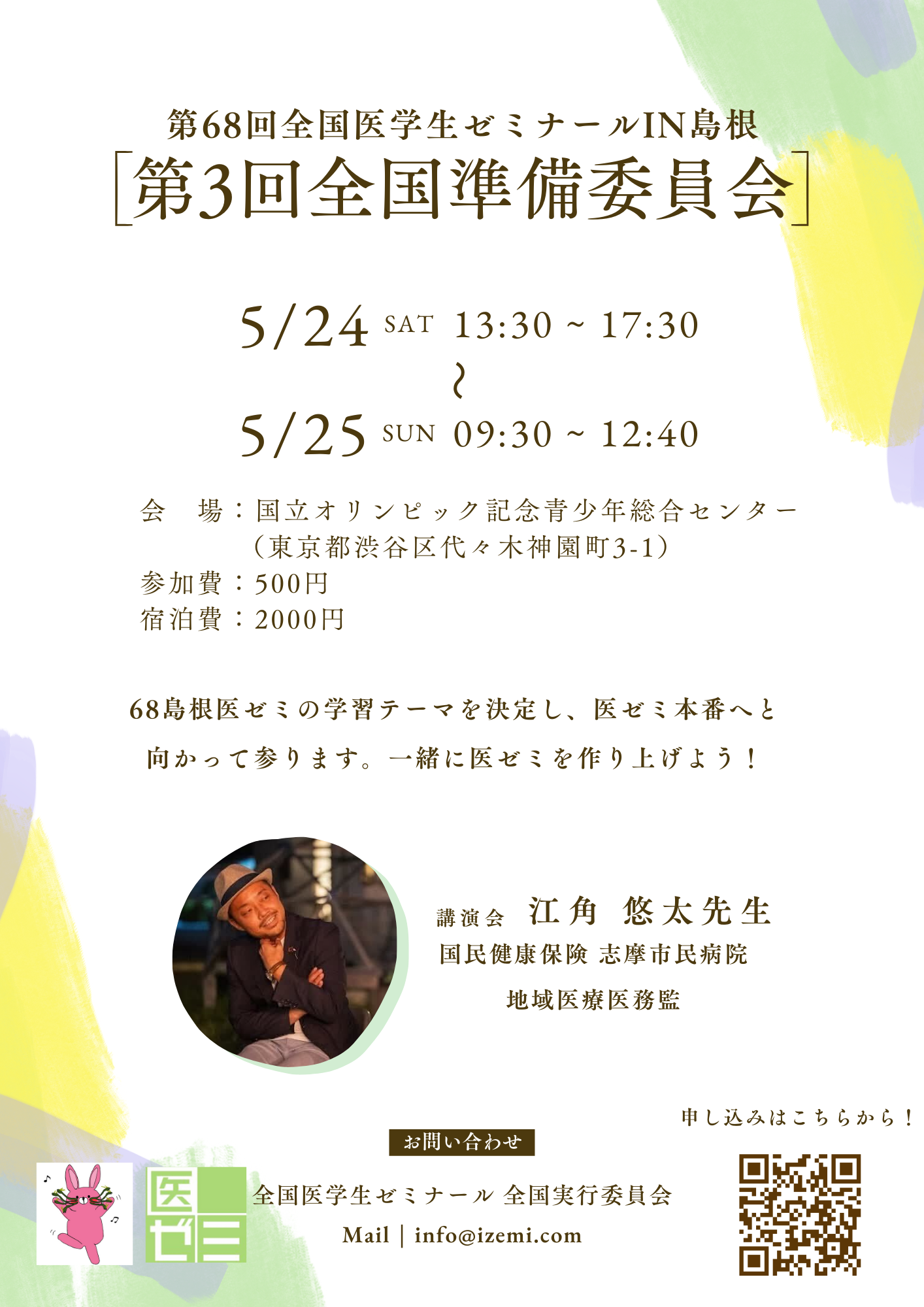 申込み締め切り: 宿泊あり→5月15日 (木) 23:59 宿泊なし→5月22日 (木) 23:59